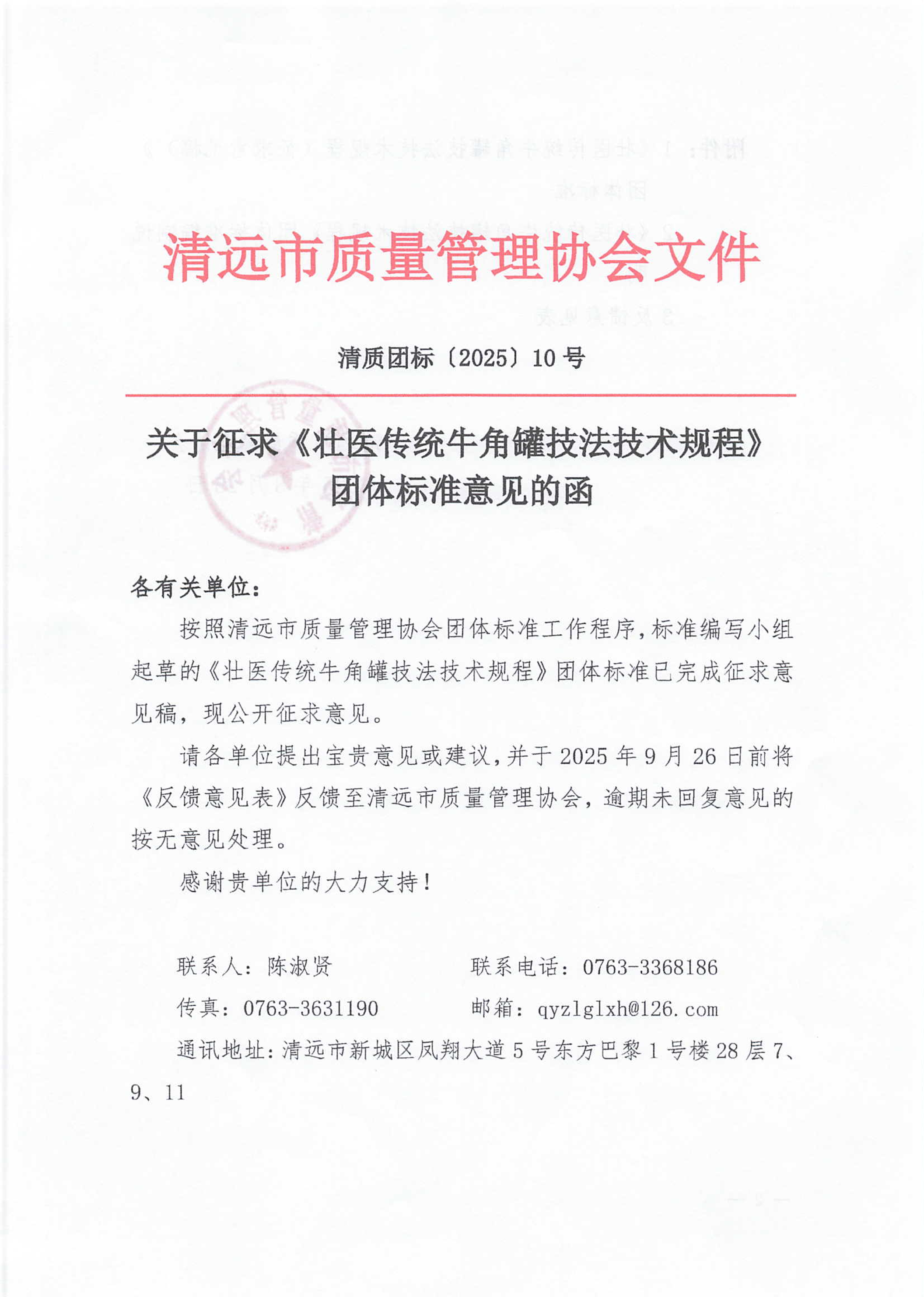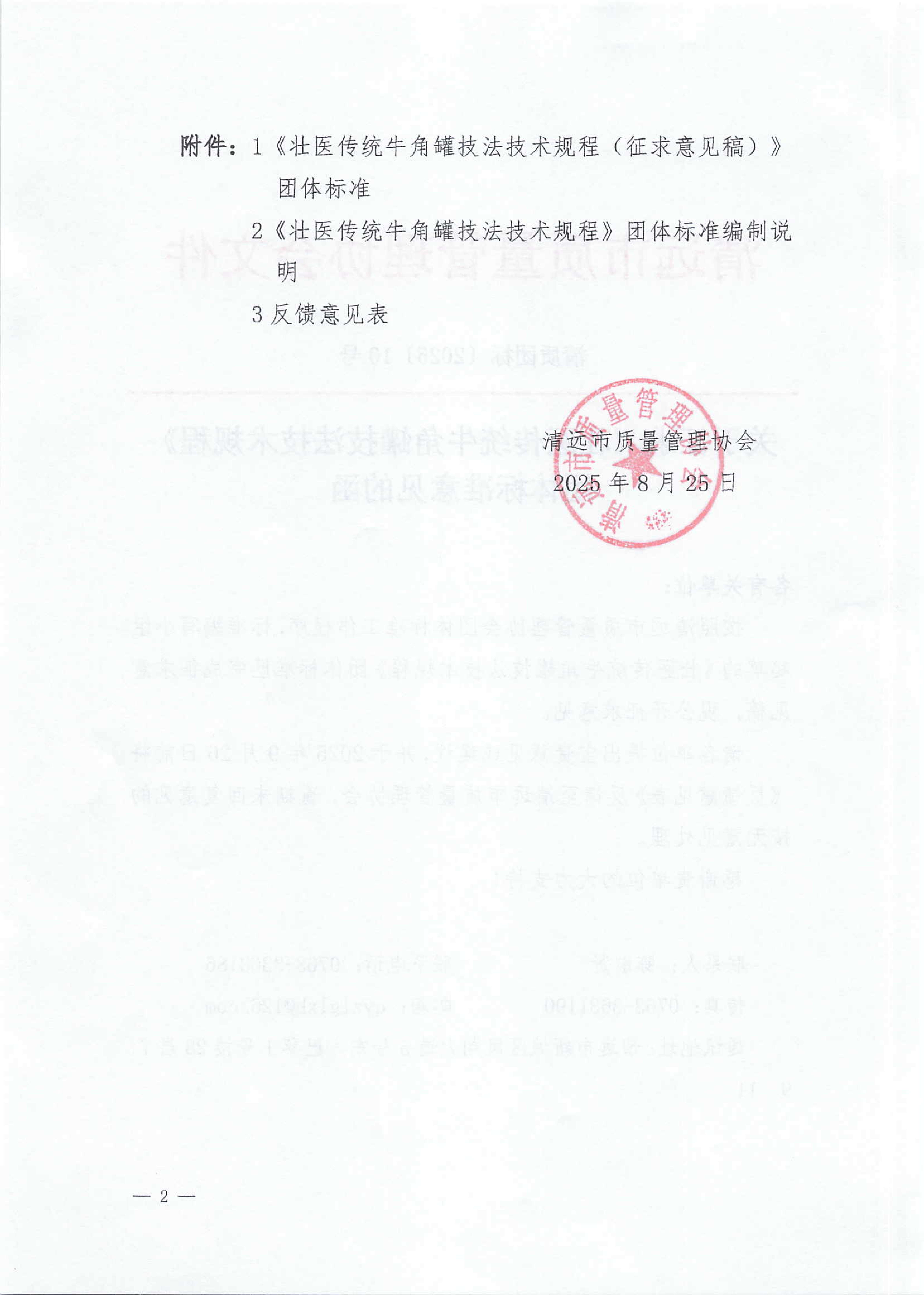 关于征求《壮医传统牛角罐技法技术规程》团体标准意见的函