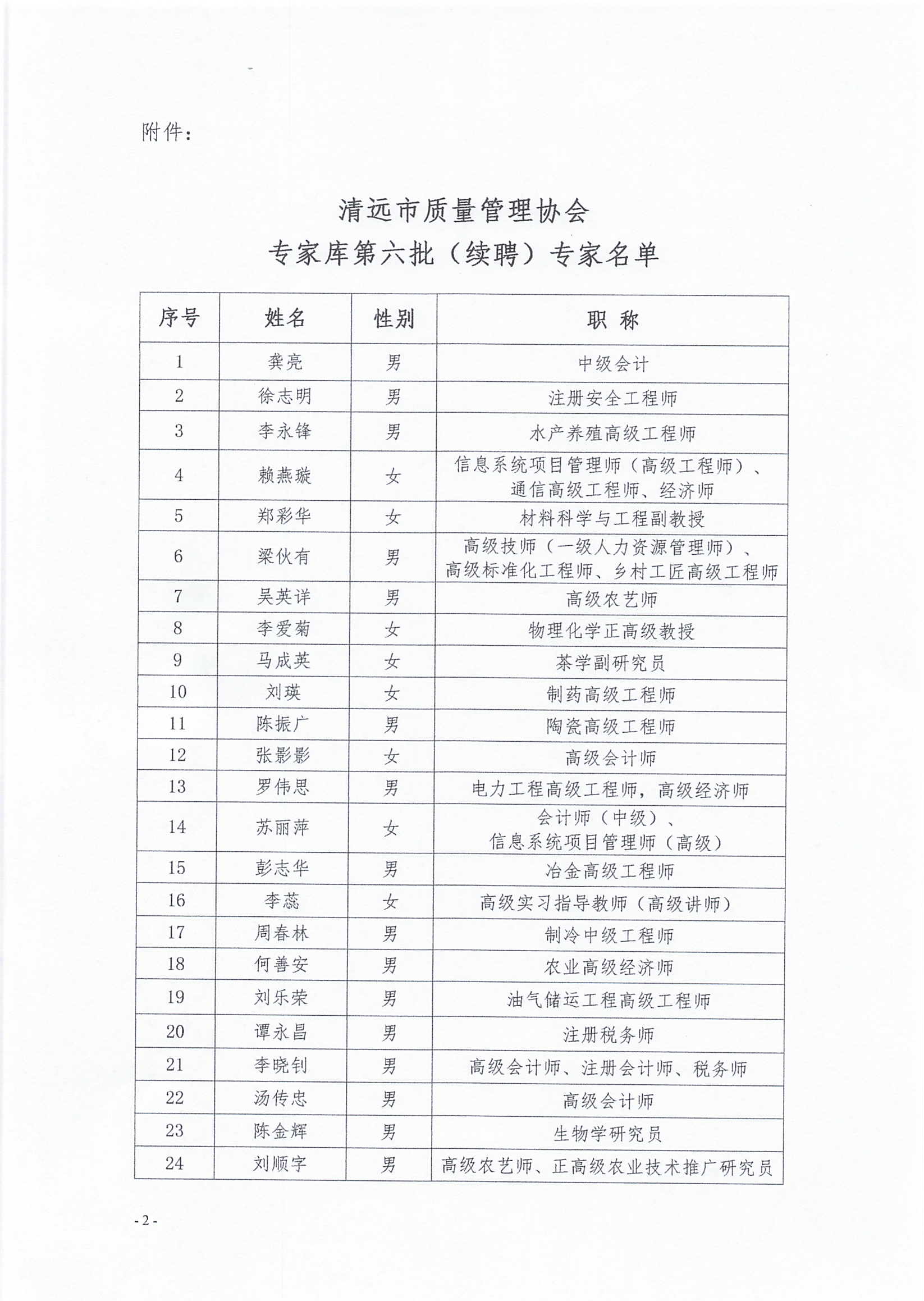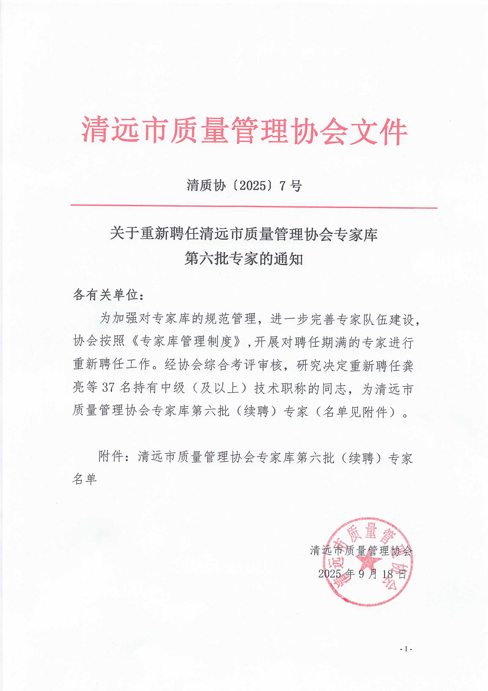 关于重新聘任清远市质量管理协会专家库第六批专家的通知