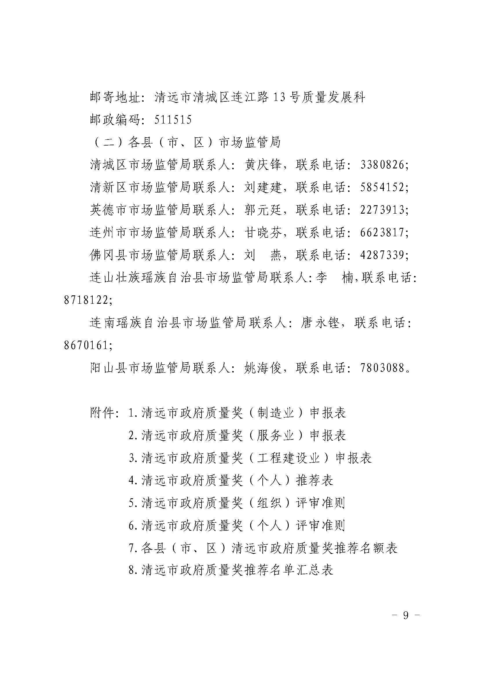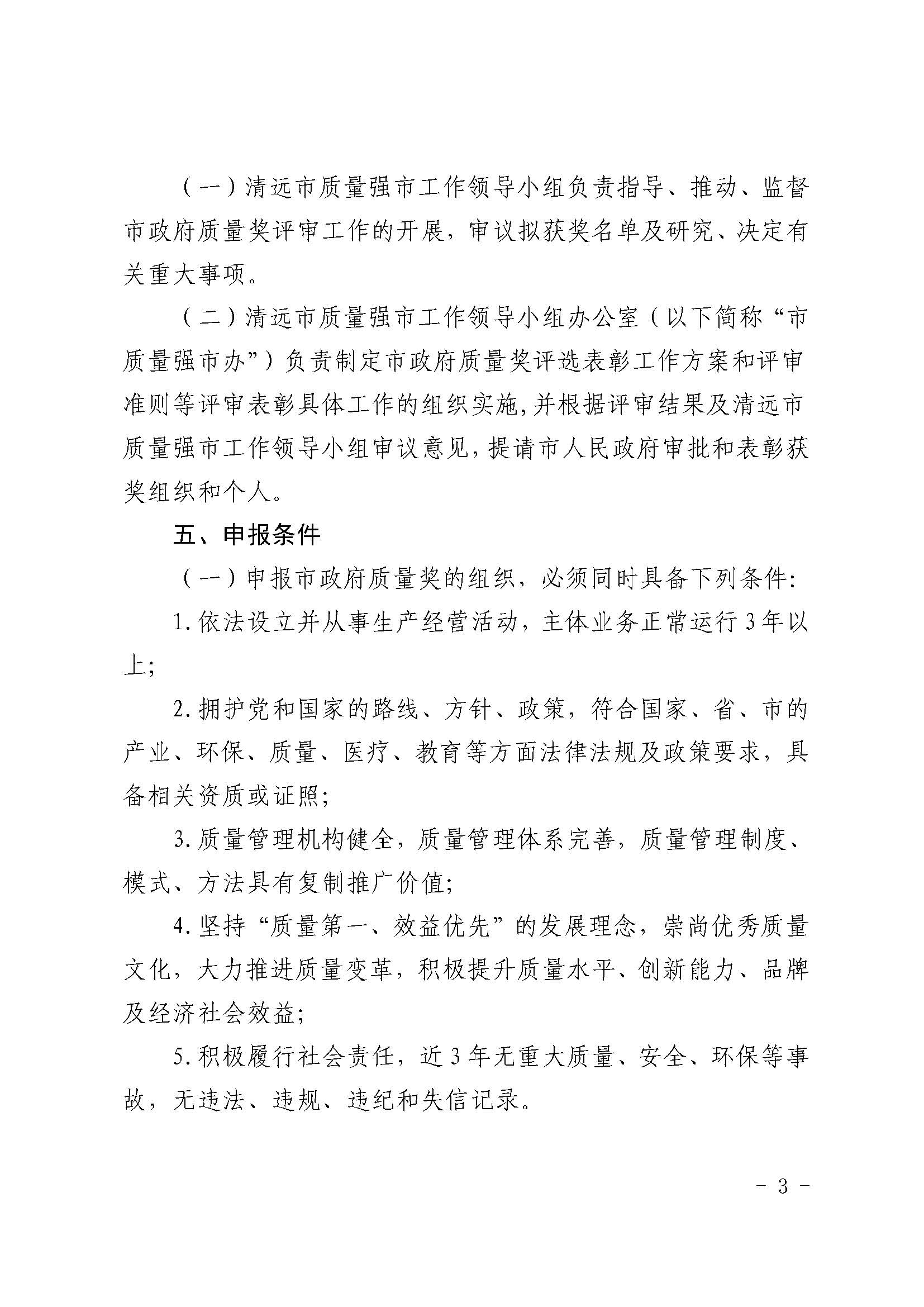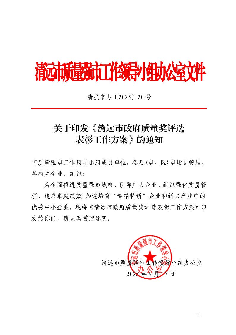 关于印发《清远市政府质量奖评选表彰工作方案》的通知