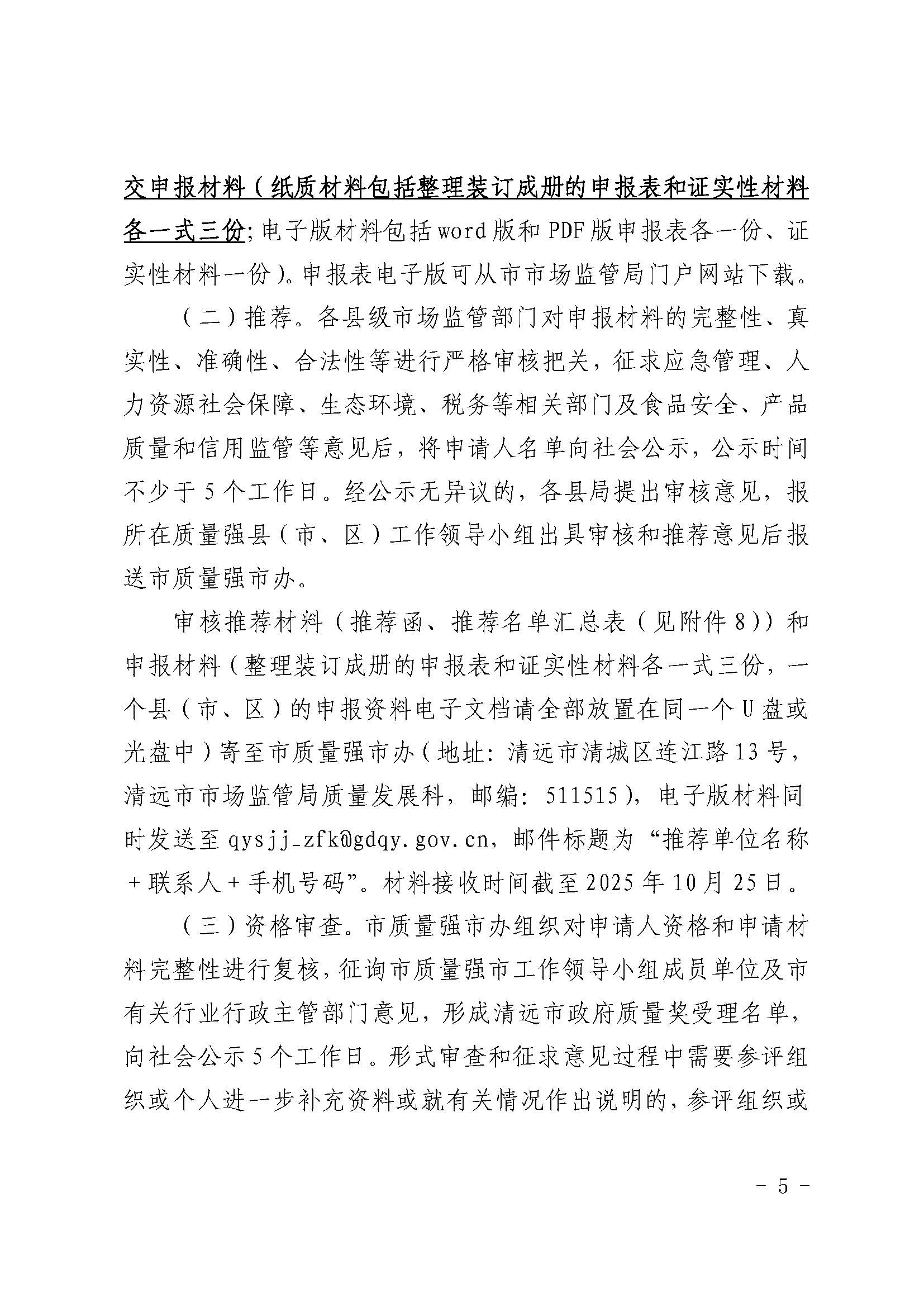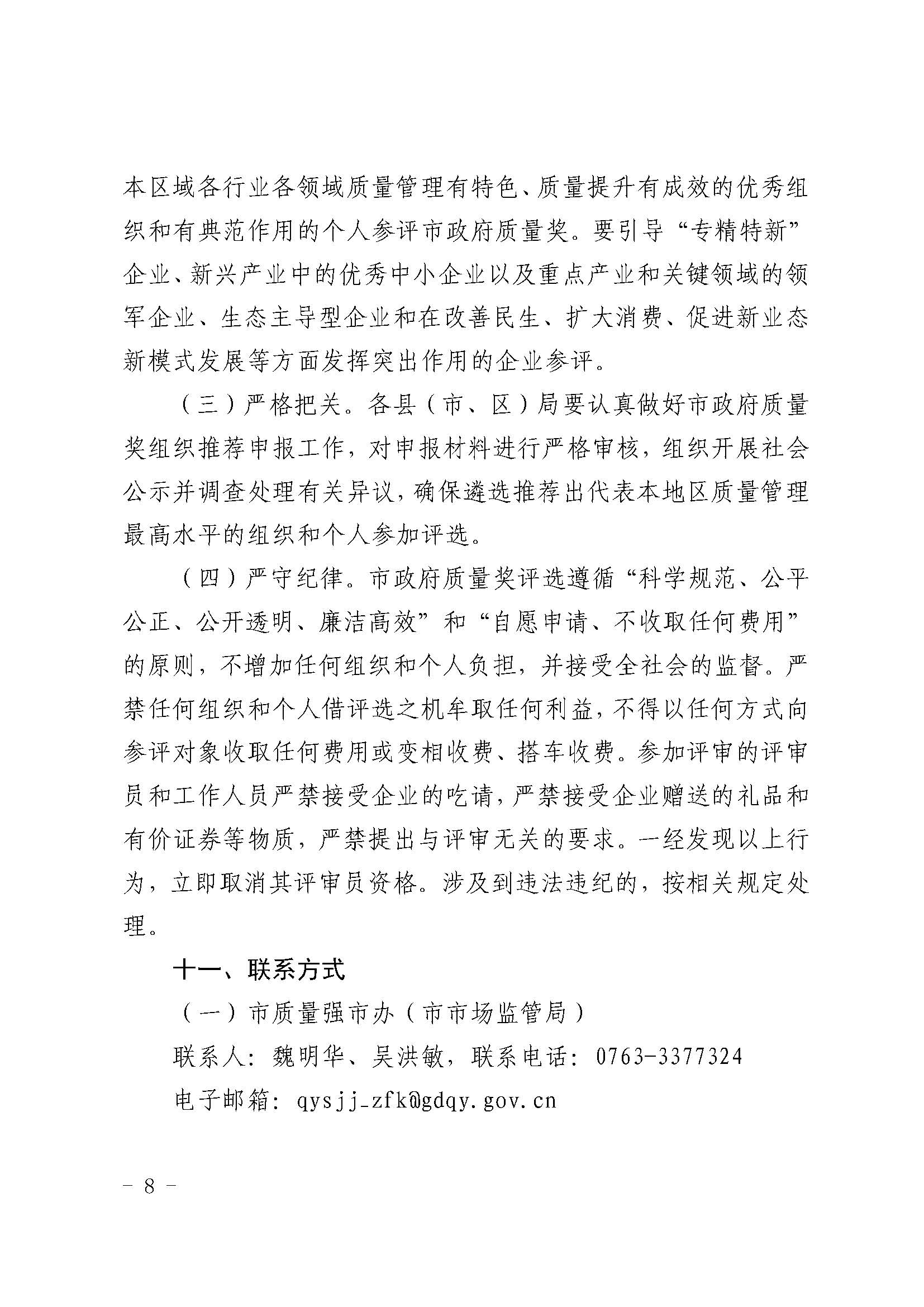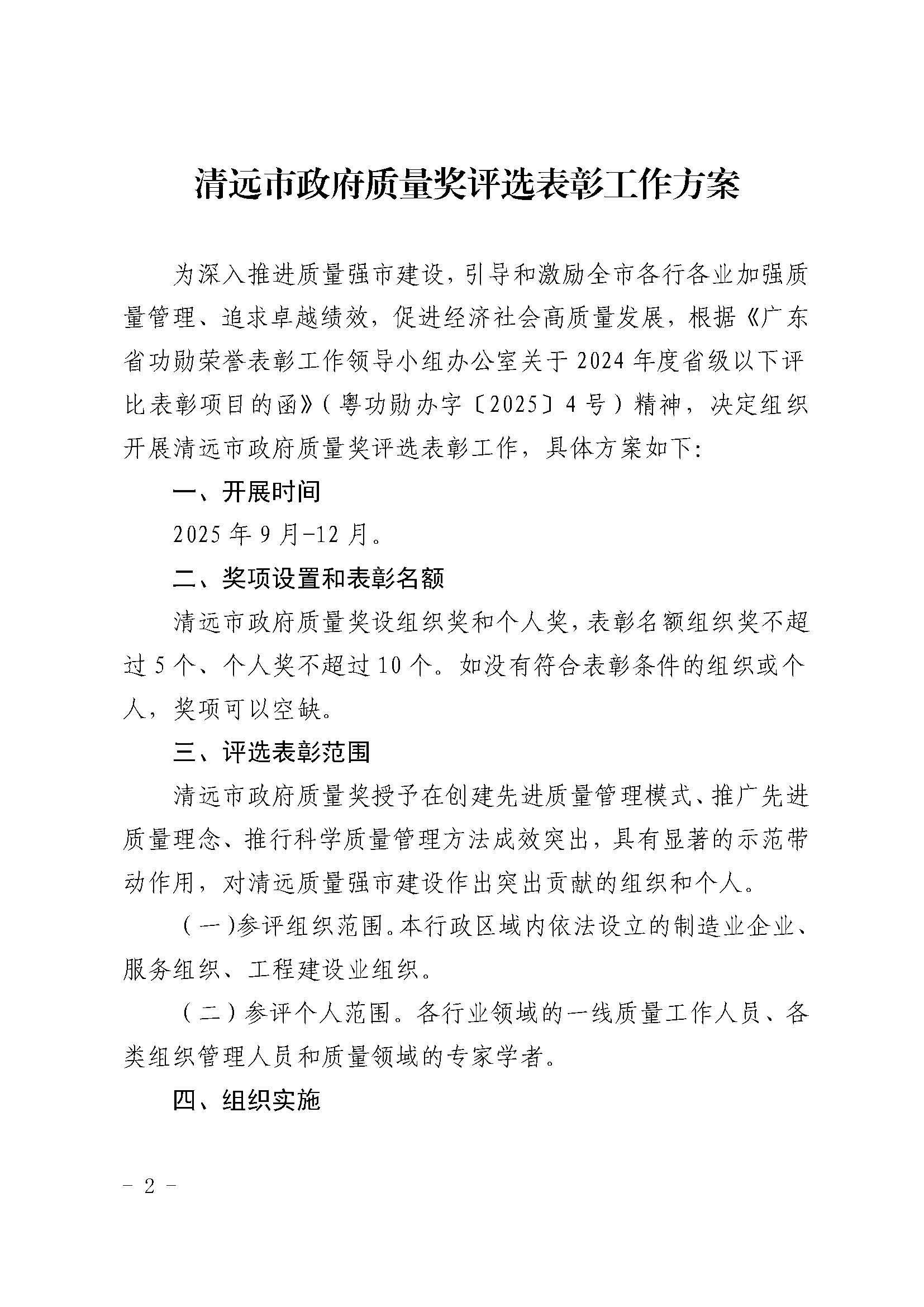 关于印发《清远市政府质量奖评选表彰工作方案》的通知