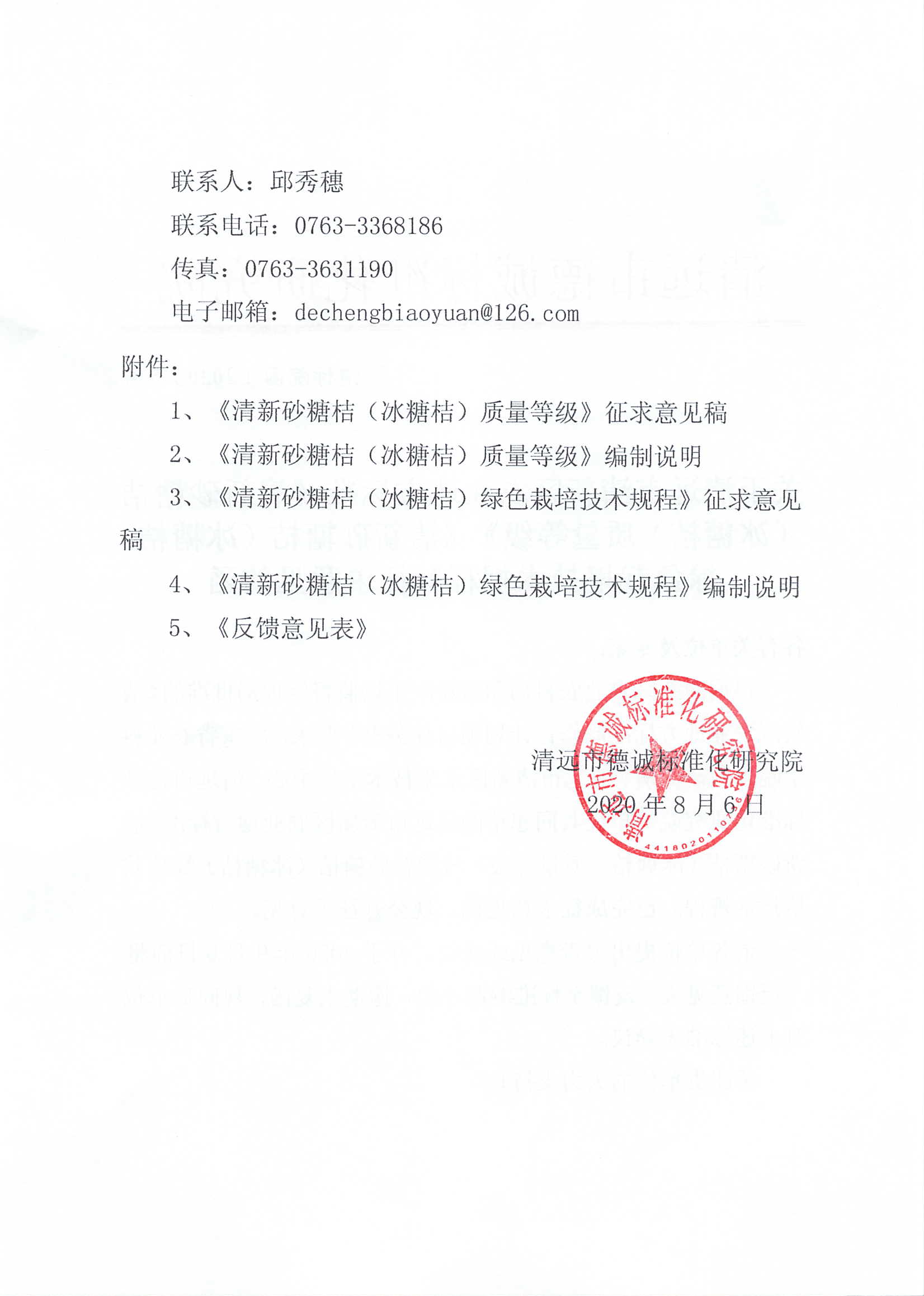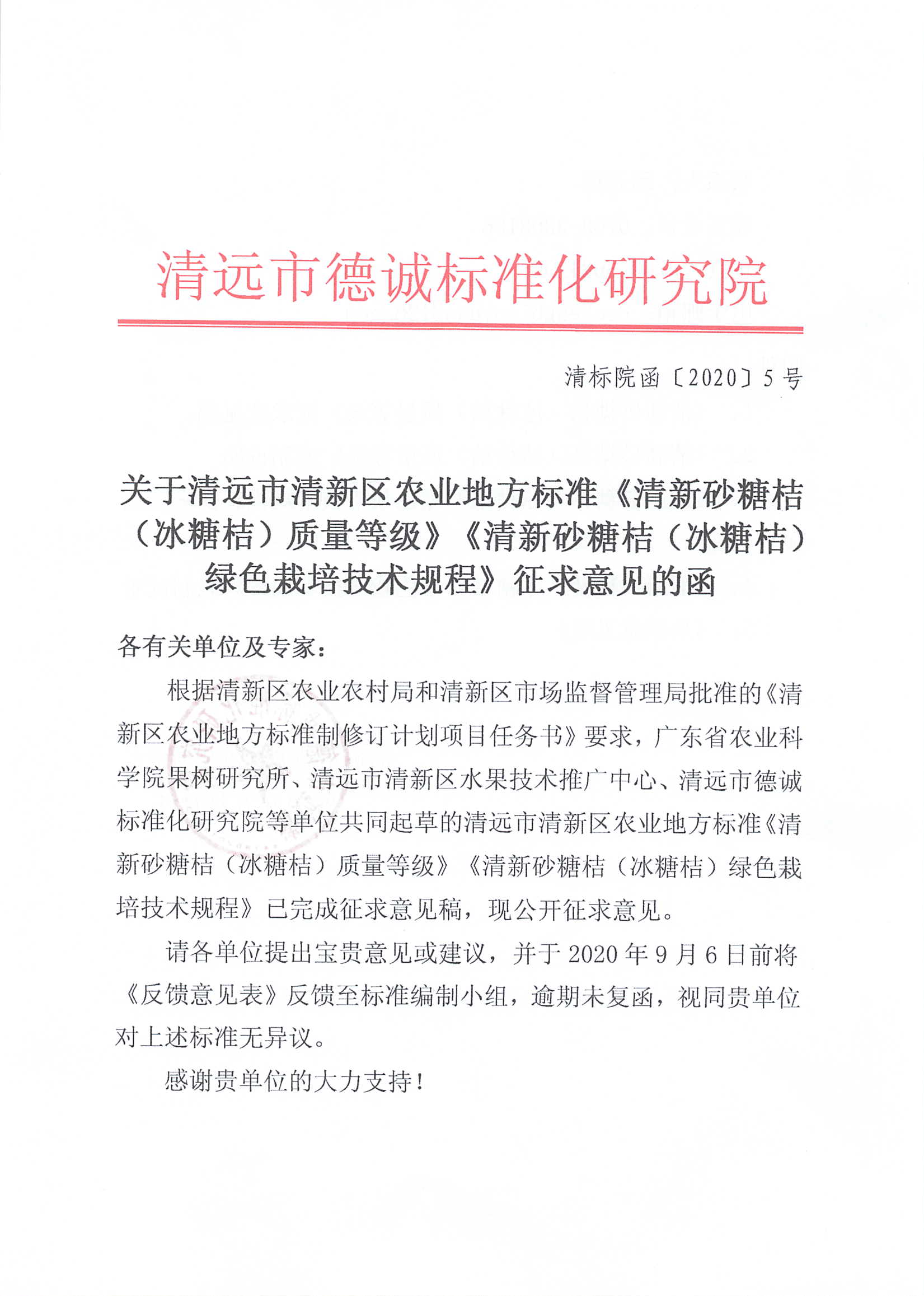 关于《清新砂糖桔(冰糖桔)质量等级》等农业地方标准征求意见的函
