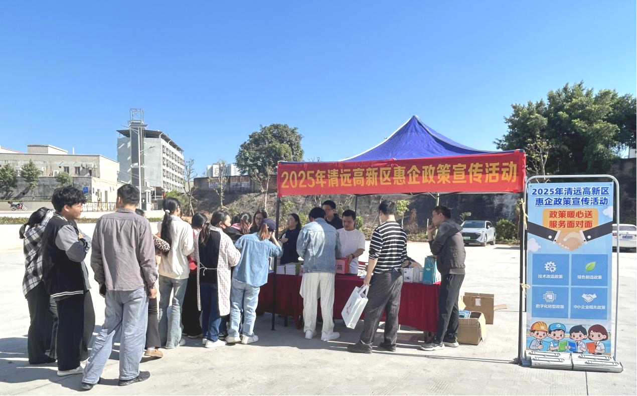 2025年11月24日,由清远高新区经济发展局主办、清远市质量管理协会承办的“政策暖心送,服务面对面 — 2025年清远高新区惠企政策宣传活动”,以户外专场的形式走进清远高新区红润谷科技产业园、奕盛众创城两大工业园区。现场约100位企业代表参加了此次活动。